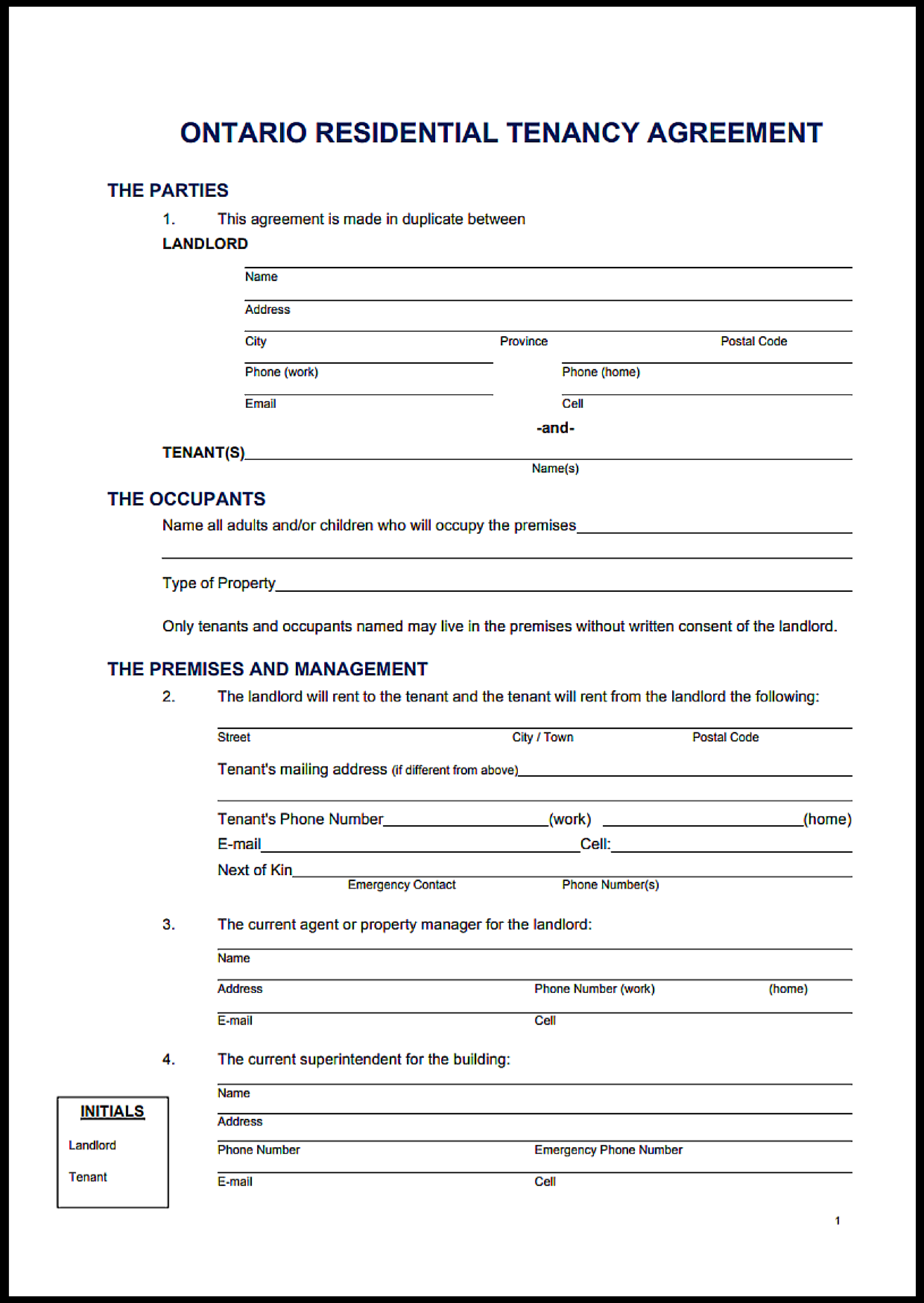- Landlords must provide the standard lease within 21 days of starting tenancy (as per Ontario government rules).