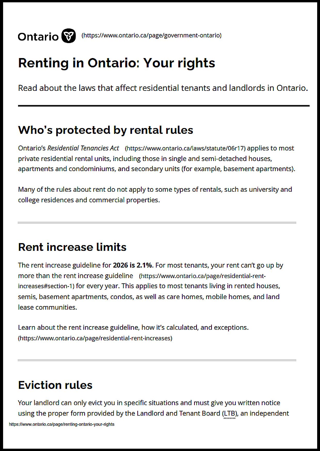 Ontario Tenant Rights Guide helps you understand what you are legally allowed to expect as a renter in Ontario.