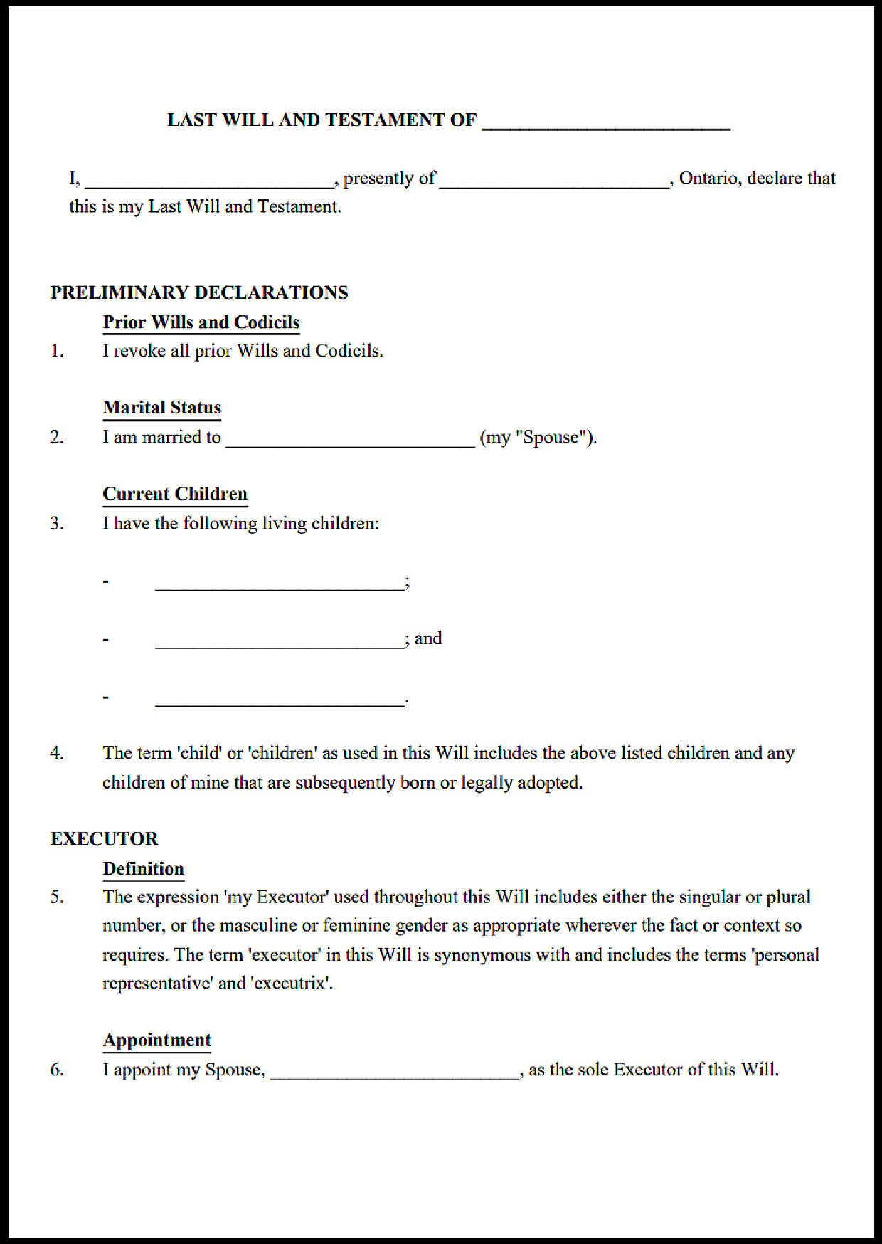 Here is a basic Ontario will template designed for individuals with simple estates.